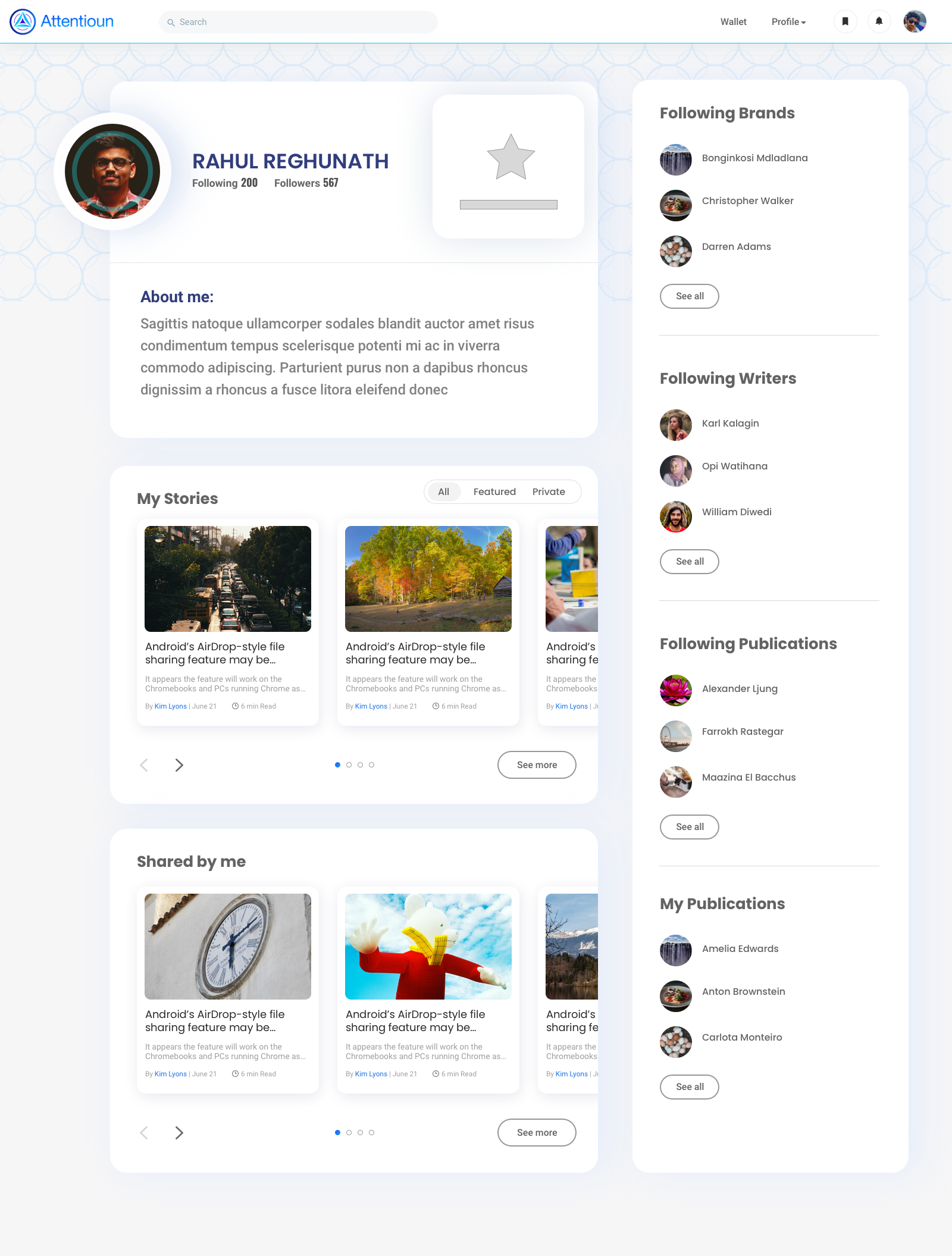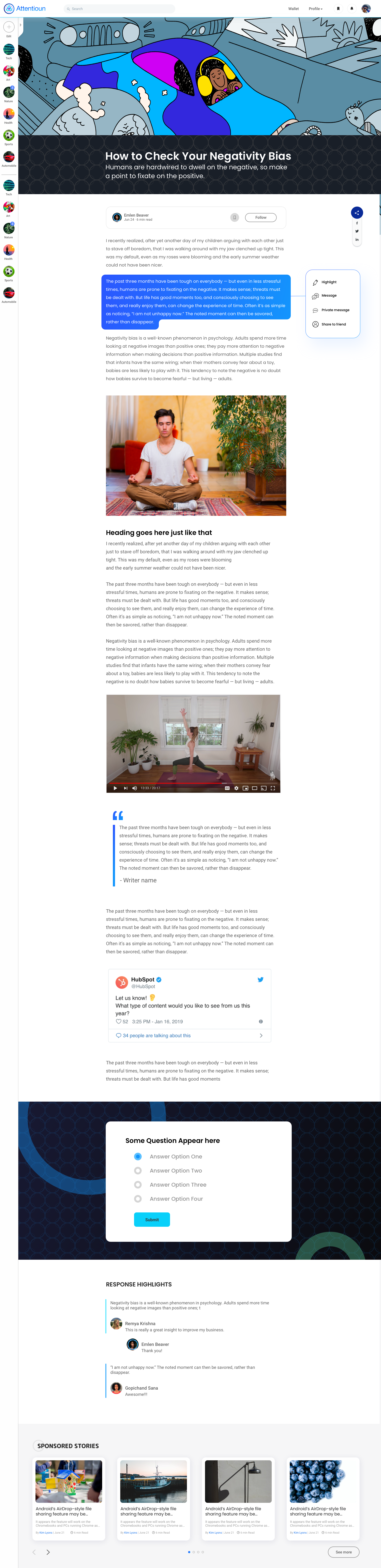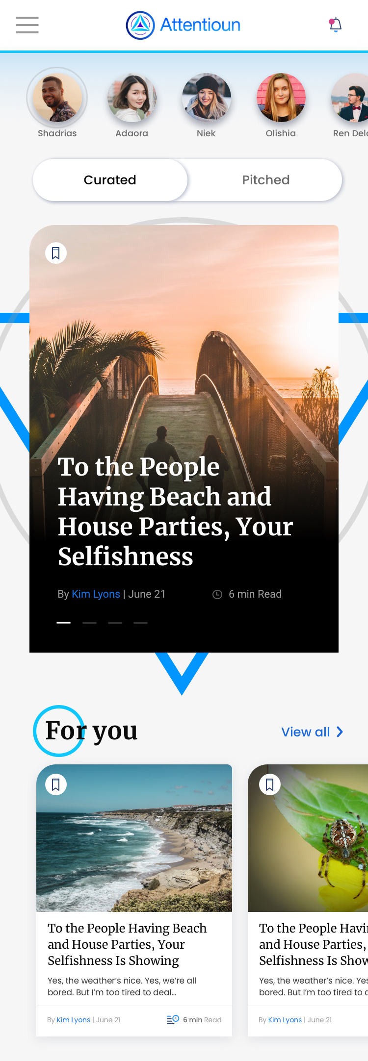 A social content platform which aims to provide a unique and valuable experience to the consumer, publisher and marketer without disrupting the quality of content and by removing the banal format of intrusive ads. In a time of cut throat ‘experience’ oriented market, the key is the right balance of comfort, quality and a fabulous touch of interaction for every type of participator. Attentioun has the scope to deserve the right Attention. Because it is worth it.