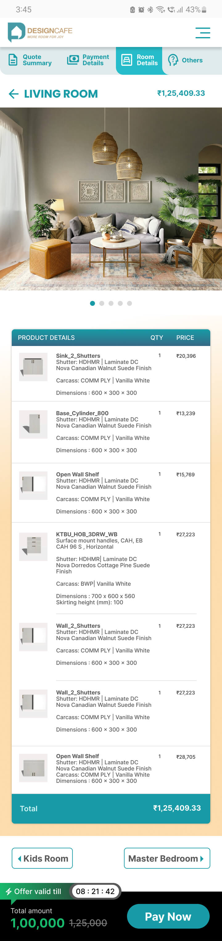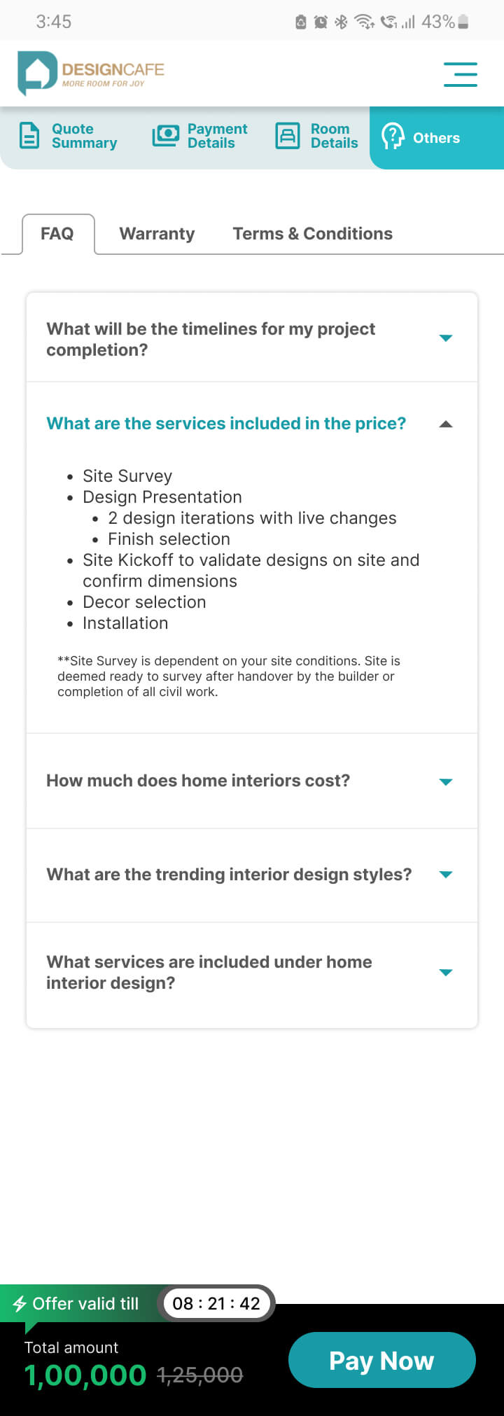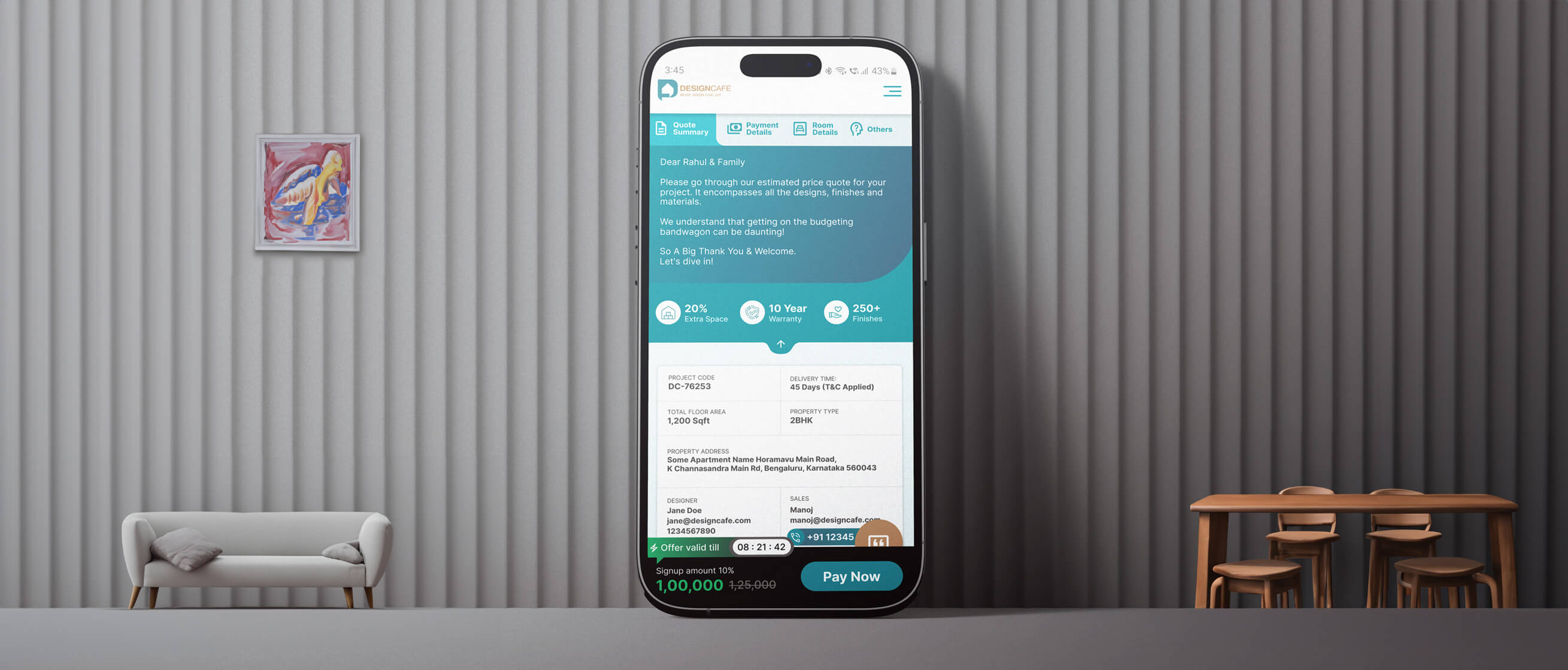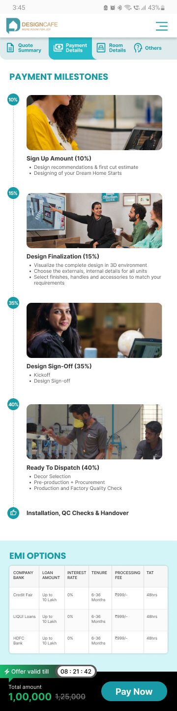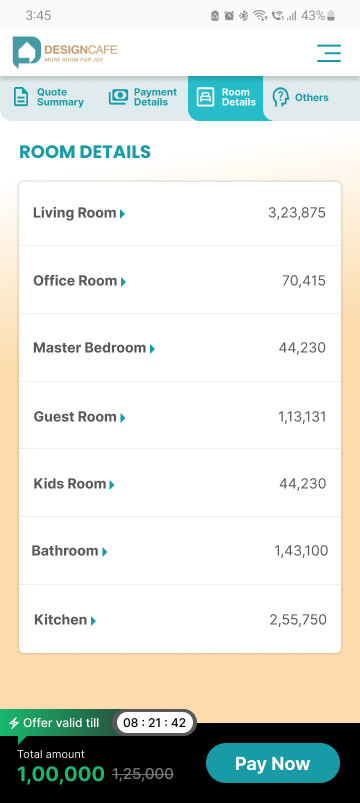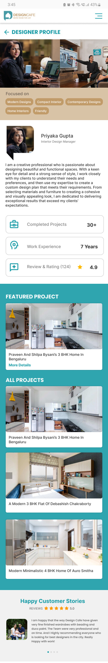 DesignCafe stands out as a prominent soonicorn in the field of home interior design solutions in India. Originating in Bangalore, this acclaimed company has expanded its footprint to over 10 cities across the nation. Renowned for its comprehensive approach, DesignCafe seamlessly manages every aspect of home solutions, ensuring quality is maintained at every stage of the process. What sets them apart is their commitment to hassle-free services and adherence to proper timelines, providing customers with a stress-free and efficient experience from the inception to the completion of their home interiors.